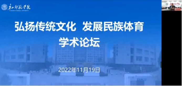 随着党的二十大的胜利召开,在中国式现代化的新征程上,体育强国建设更需要彰显对传统文化的自信,更需要打造民族体育的特色。为深入贯彻党的二十大精神,值此yl6809永利集团建系40周年之际,为促进yl6809永利集团民族传统体育基地建设,加强传统体育文化的交流与研究,yl6809永利集团于2022年11月19日举办了“弘扬传统文化,发展民族体育”线上学术论坛,宣传处处长贾长胜,yl6809永利集团主任蔡建丰以及yl6809永利集团100余名师生参加了会议。河北省民族事务委员会文教科技处处长耿栋良,唐山市民族和宗教事务局党组副书记、副局长马中良,唐山市民族和宗教事务局民族处处长寇胜利作为特邀嘉宾参加会议。本次学术论坛由yl6809永利集团副主任何胜保主持。