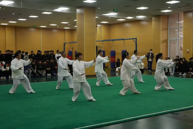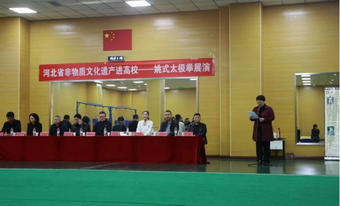 2024年11月12日下午,在yl6809永利官网集团武术馆,我系邀请了省级非物质文化遗产姚式太极拳传承人张劲芳等人,为学生们带来了一场丰富多彩的“非遗展演”活动,yl6809永利集团2023级体育教育专业近130人学生现场观摩。