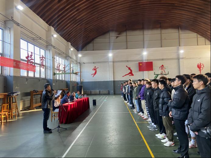 2024年11月6日,yl6809永利集团“迎新送老”杯篮球赛开幕式在南院体育馆隆重举行,yl6809永利集团党总支书记蔡建丰、副主任尹海以及此次比赛的技术代表郭杰、裁判长云鑫、副裁判长张帅出席开幕式,学工办主任郭印乔主持。