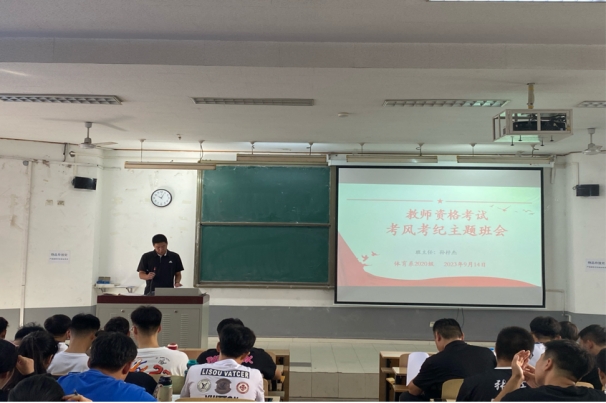 2023年9月14日,yl6809永利集团2020级体育教育专业在3阶梯开展了主题为“教师资格考试考风考纪”的主题班会。参加本次主题班会的成员有孙梓杰老师及2020级全体同学。此次诚信考试、考风考纪主题班会的开展,在推动大学生深化诚信观念、增强诚信意识、培养诚信品质等方面有着深远的意义。