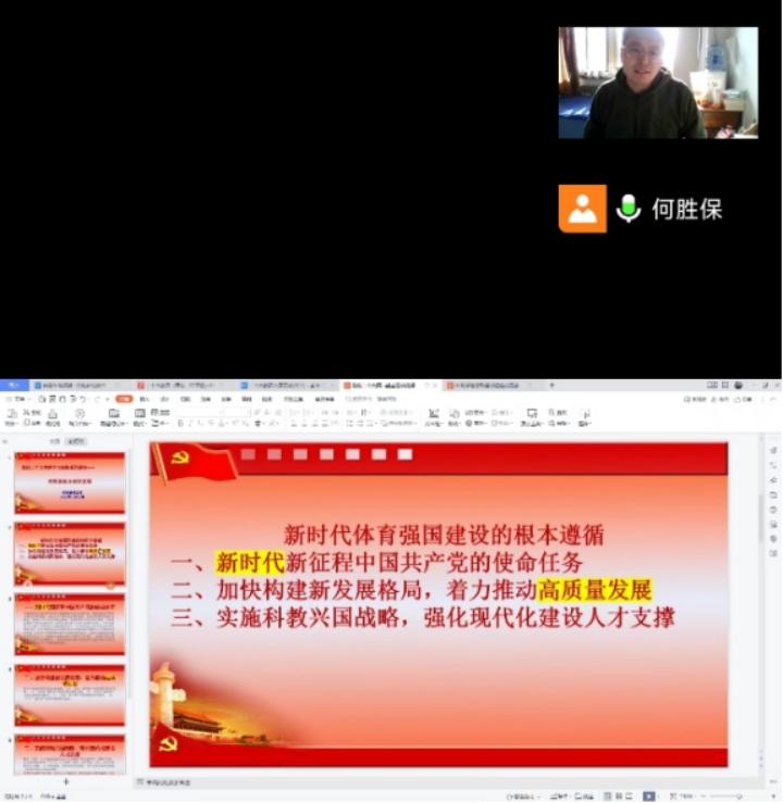 为促进我系学生加强党的二十大精神学习,并与专业学习、发展有机结合,充分发挥专业思政、课程思政的重要作用,11月29日,我系何胜保副主任通过腾讯视频会议的方式为我系学生做了党的二十大精神宣讲。