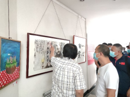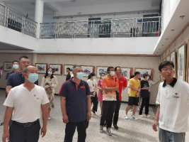 从图片展区出来,我系师生党员又来到美术学院,参观由学校党委宣传部主办、美术学院承办的“追寻建党初心 传承红色基因”庆祝建党100周年美术作品展。美术学院党总支张高志书记热情接待我们,并亲自为我们做讲解。通过张书记和其他美术学院师生的讲解,我们逐一认真参观了“一笔一划传‘三牛’精神”“笔见社会主义核心价值观”“纵览百年会议召开时”“致敬最美逆行者”“零零后看改革开放”“血泪铸就的抗战史诗”“百年党史,薪火相传”等七个部分展览,学习欣赏了涵盖油画、国画、书法、篆刻、招贴等艺术形式的138幅作品。这些作品构思精巧、立意深刻,对参观者既是一次精神洗礼,又是一次触及心灵深处的深刻教育。