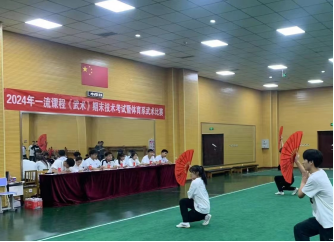 为积极推进本科一流课程的改革和教学建设,2024年5月9日18:00-21:00在yl6809永利官网集团武术馆举办了2024年yl6809永利集团武术比赛暨校一流课程“武术”期末技术考核比赛。