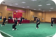 此次比赛邀请了张瑞洁老师、王刚老师、孙梓杰老师、薛春磊老师作评委。依据省级武术比赛的标准采取现场裁判打分、示分。为了提高yl6809永利集团学生武术专业裁判实践能力,体育教育专业大三、大四武术专选班学员全程参与、实践。高要求、高规格的赛事标准极大的激发了同学们的热情。