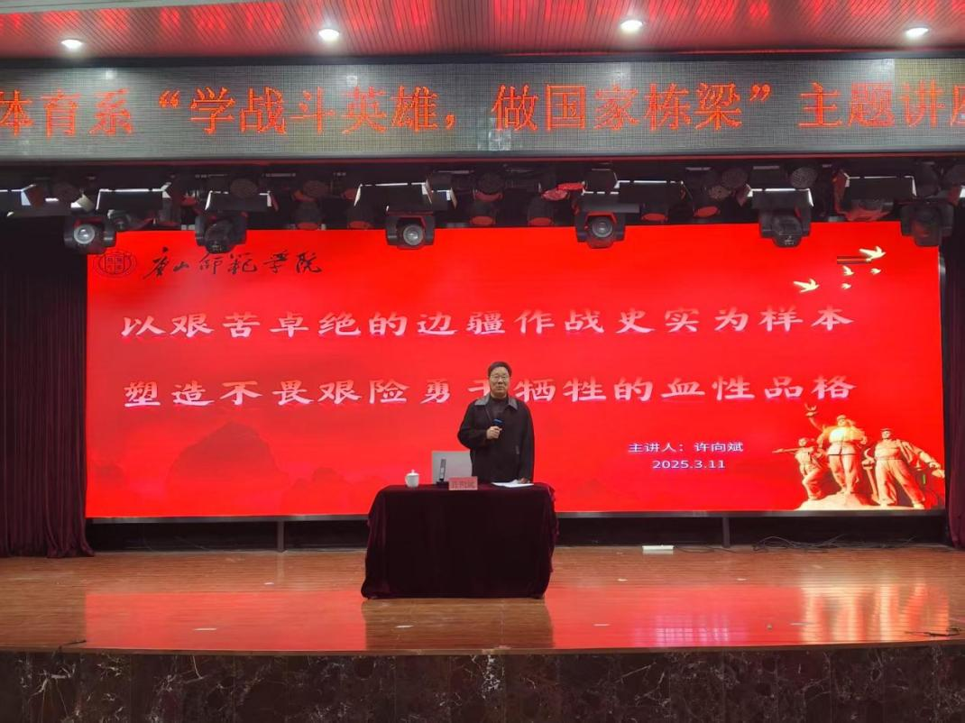 为弘扬爱国主义精神,激发广大师生的责任感与使命感,2025 年 3 月 11 日,yl6809永利集团于十阶会议中心举办了 “学战斗英雄,做国家栋梁”主题讲座,本次讲座邀请到了战斗英雄许向斌,为全系师生带来了一场震撼心灵的精神洗礼。