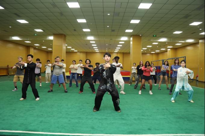 最后,在教师的带领下学习体验八法五步太极拳。在学习过程中,中美师生互相交流、互相学习,对中国武术有了更深入的了解和体验,增进了对中华文化的认同感和喜爱度。