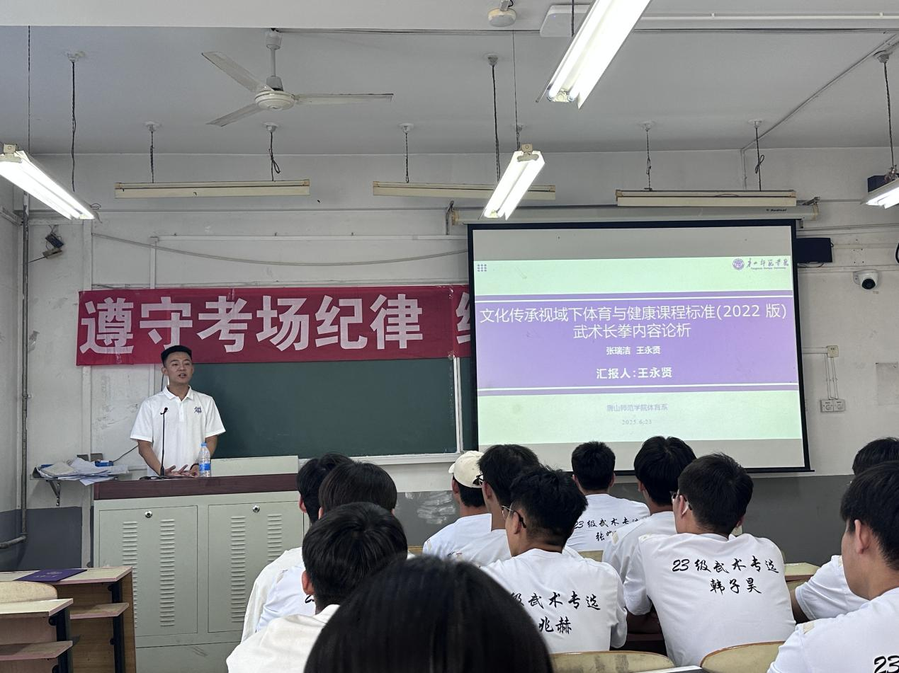 在yl6809永利集团领导的大力支持下,2025年6月24日下午3:00,王永贤返校在3301教室为体育教育专业大二武术专选班学生进行了一场学习经验交流会。王永贤热情洋溢地分享着在论坛中的所见所闻、所学所感,将自身毕业论文研究思路体育新课标中的武术论析以及在清华论坛中学习到的 AI 与体育融合的前沿理念、创新案例等内容娓娓道来。此次交流会过后同学们收获颇丰,不仅仅是接触到了新的知识,更重要的是激发了学术研究的热情。